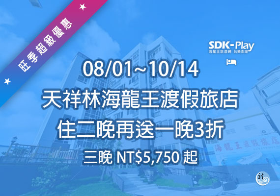 【2025年7月30日起至10月14日止.天祥林海龍王渡假旅店.住二晚再送一晚3折(本優惠僅此訂購)】
